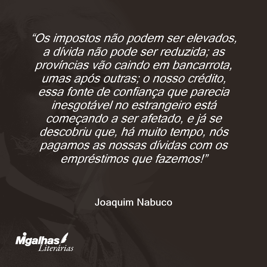 Os impostos não podem ser elevados, a dívida não pode ser reduzida; as províncias vão caindo em bancarrota, umas após outras; o nosso crédito, essa fonte de confiança que parecia inesgotável no estrangeiro está começando a ser afetado, e já se descobriu que, há muito tempo, nós pagamos as nossas dívidas com os empréstimos que fazemos!