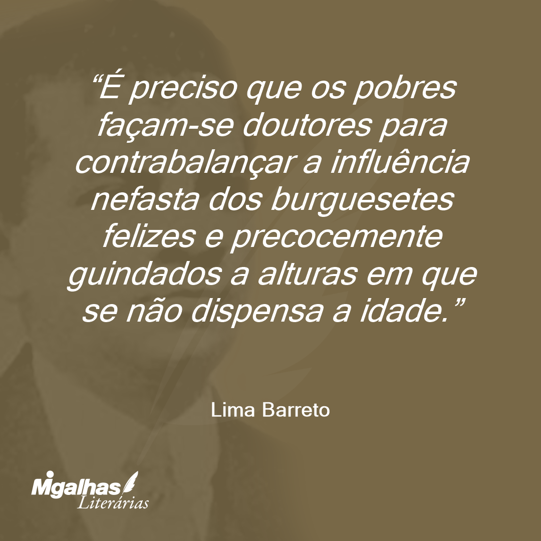 É preciso que os pobres façam-se doutores para contrabalançar a influência nefasta dos burguesetes felizes e precocemente guindados a alturas em que se não dispensa a idade.