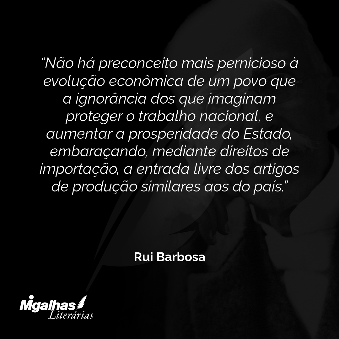 Não há preconceito mais pernicioso à evolução econômica de um povo que a ignorância dos que imaginam proteger o trabalho nacional, e aumentar a prosperidade do Estado, embaraçando, mediante direitos de importação, a entrada livre dos artigos de produção similares aos do país.