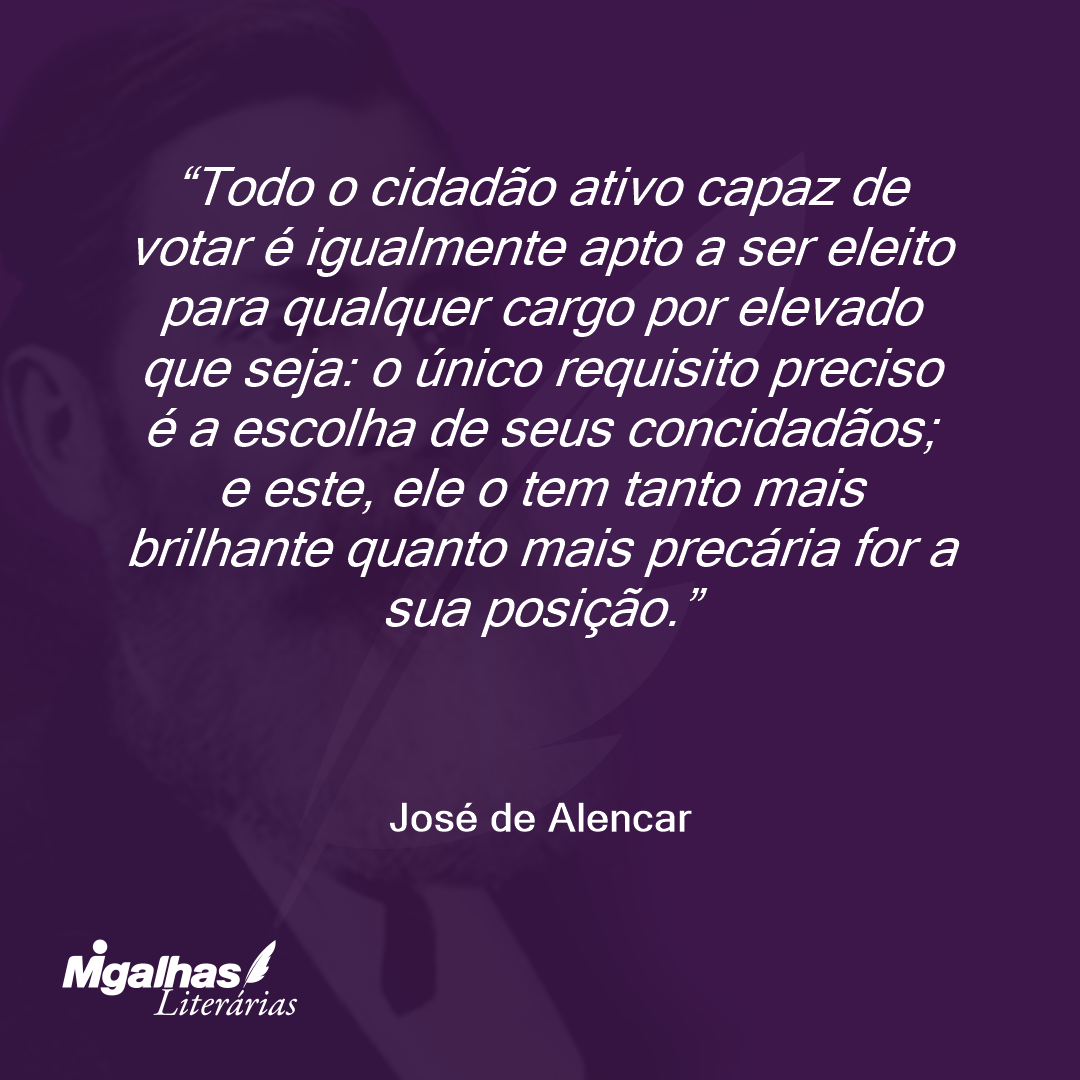 Todo o cidadão ativo capaz de votar é igualmente apto a ser eleito para qualquer cargo por elevado que seja: o único requisito preciso é a escolha de seus concidadãos; e este, ele o tem tanto mais brilhante quanto mais precária for a sua posição.