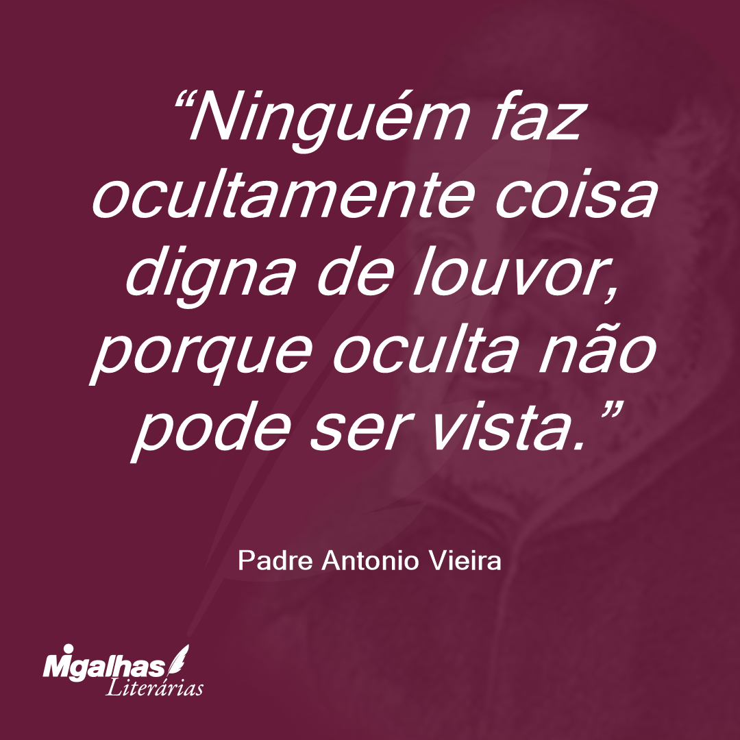 Ninguém faz ocultamente coisa digna de louvor, porque oculta não pode ser vista.