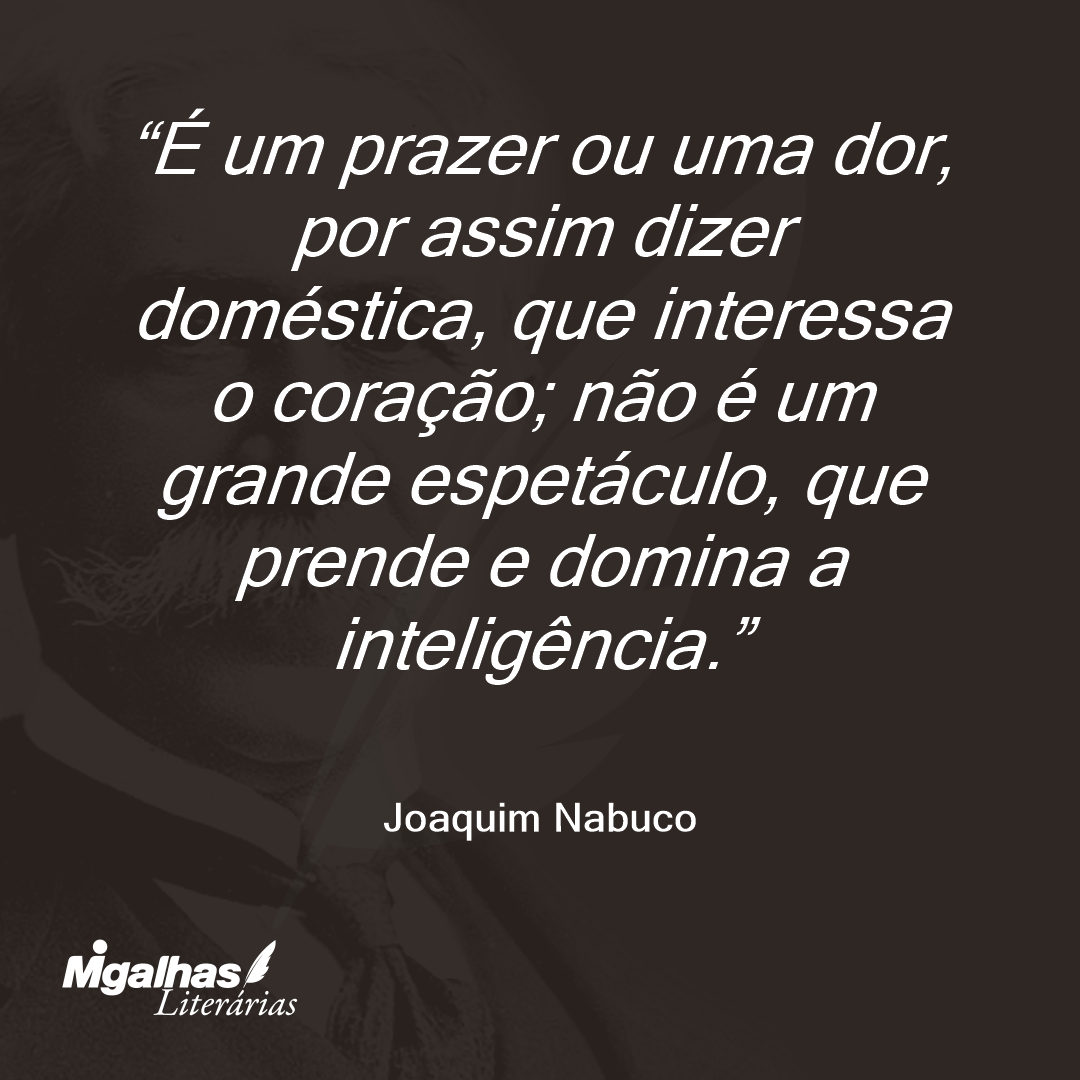É um prazer ou uma dor, por assim dizer doméstica, que interessa o coração; não é um grande espetáculo, que prende e domina a inteligência.
