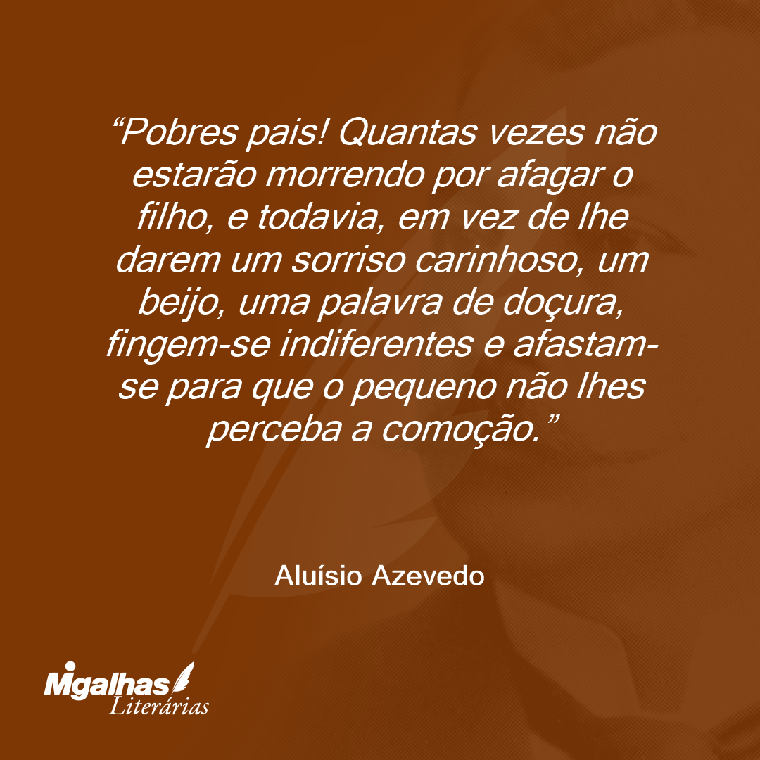 Pobres pais! Quantas vezes não estarão morrendo por afagar o filho, e todavia, em vez de lhe darem um sorriso carinhoso, um beijo, uma palavra de doçura, fingem-se indiferentes e afastam-se para que o pequeno não lhes perceba a comoção.