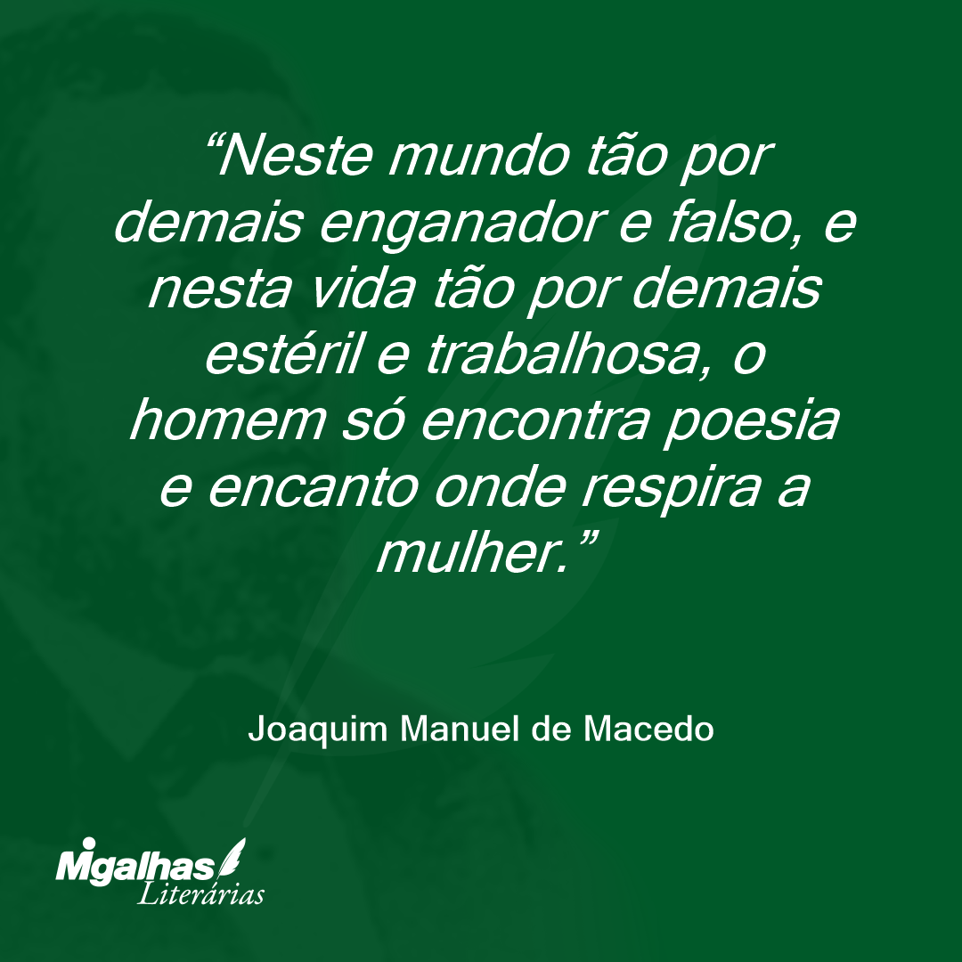 Neste mundo tão por demais enganador e falso, e nesta vida tão por demais estéril e trabalhosa, o homem só encontra poesia e encanto onde respira a mulher.