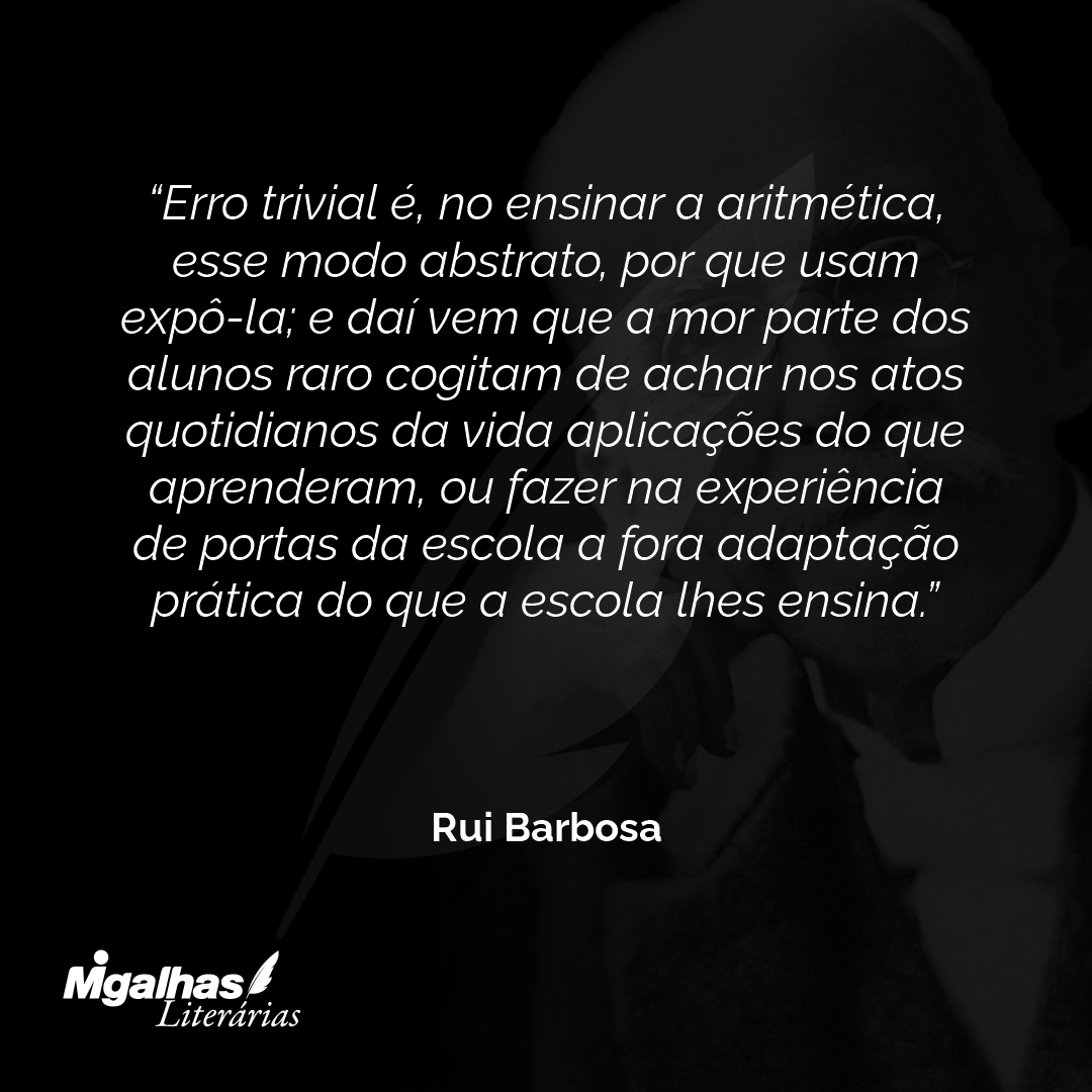 Erro trivial é, no ensinar a aritmética, esse modo abstrato, por que usam expô-la; e daí vem que a mor parte dos alunos raro cogitam de achar nos atos quotidianos da vida aplicações do que aprenderam, ou fazer na experiência de portas da escola a fora adaptação prática do que a escola lhes ensina.