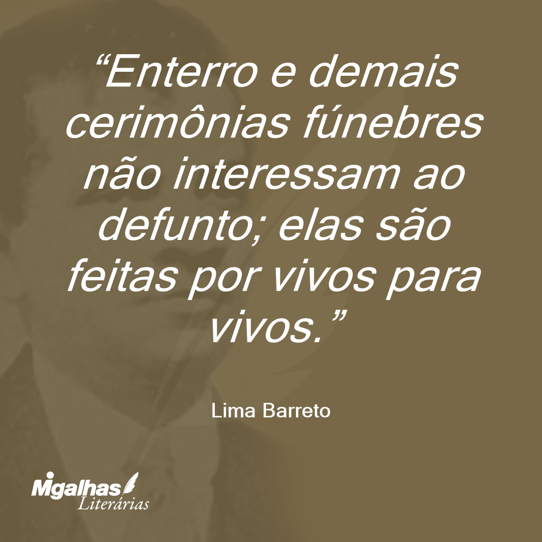 A vida tem os seus direitos imprescritíveis; primeiro os vivos e os seus consórcios; os mortos e os seus enterros que esperem.