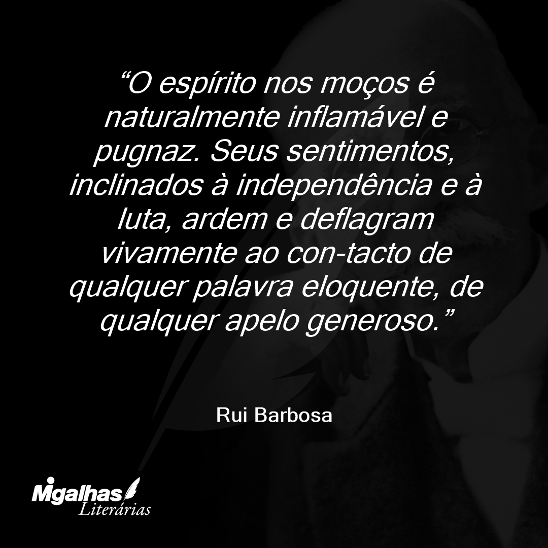 O espírito nos moços é naturalmente inflamável e pugnaz. Seus sentimentos, inclinados à independência e à luta, ardem e deflagram vivamente ao con-tacto de qualquer palavra eloquente, de qualquer apelo generoso.