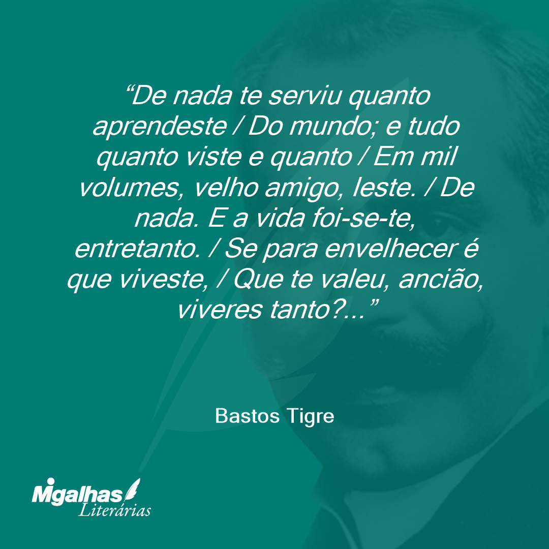 De nada te serviu quanto aprendeste / Do mundo; e tudo quanto viste e quanto / Em mil volumes, velho amigo, leste. / De nada. E a vida foi-se-te, entretanto. / Se para envelhecer é que viveste, / Que te valeu, ancião, viveres tanto?...