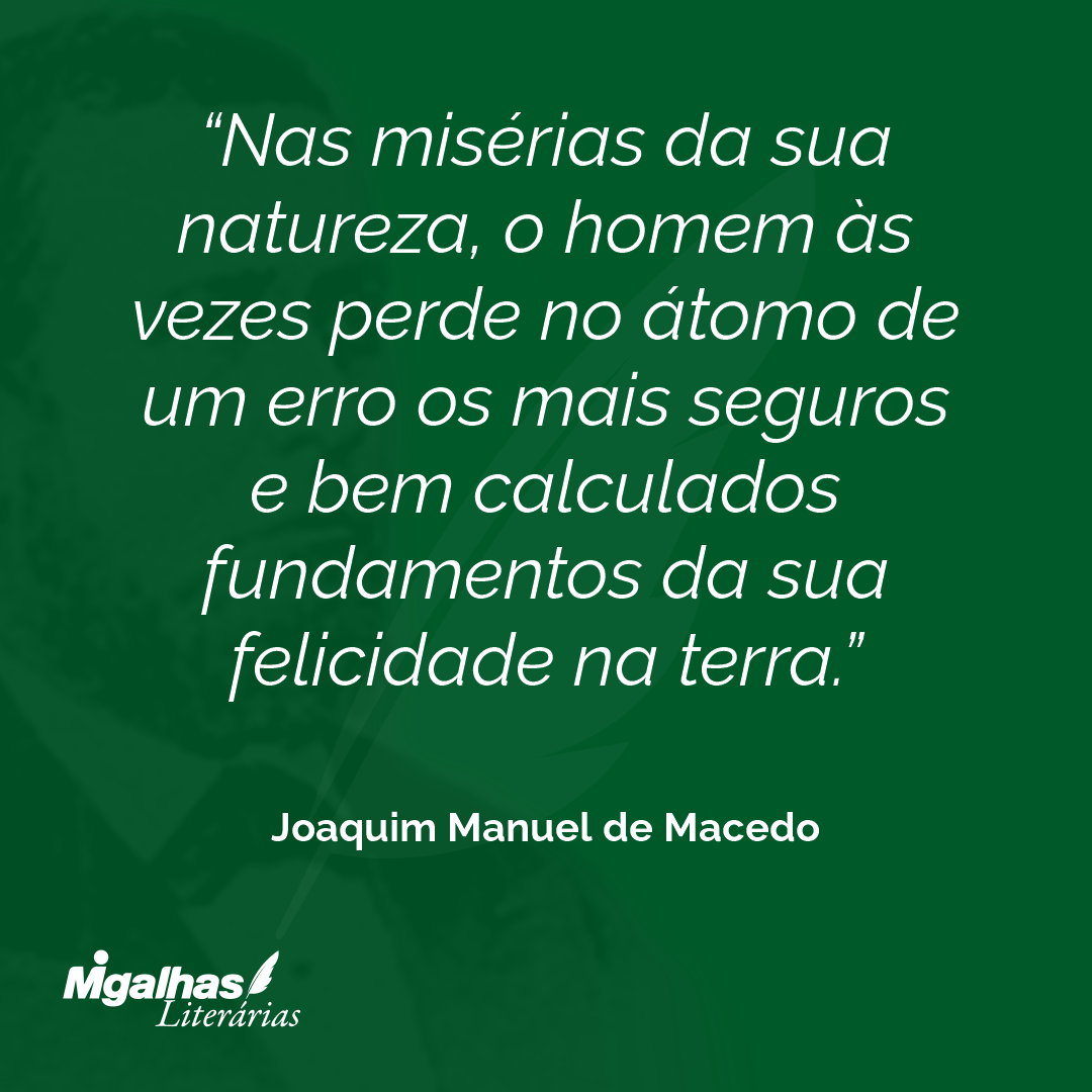 Nas misérias da sua natureza, o homem às vezes perde no átomo de um erro os mais seguros e bem calculados fundamentos da sua felicidade na terra.