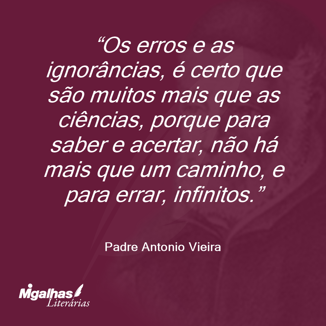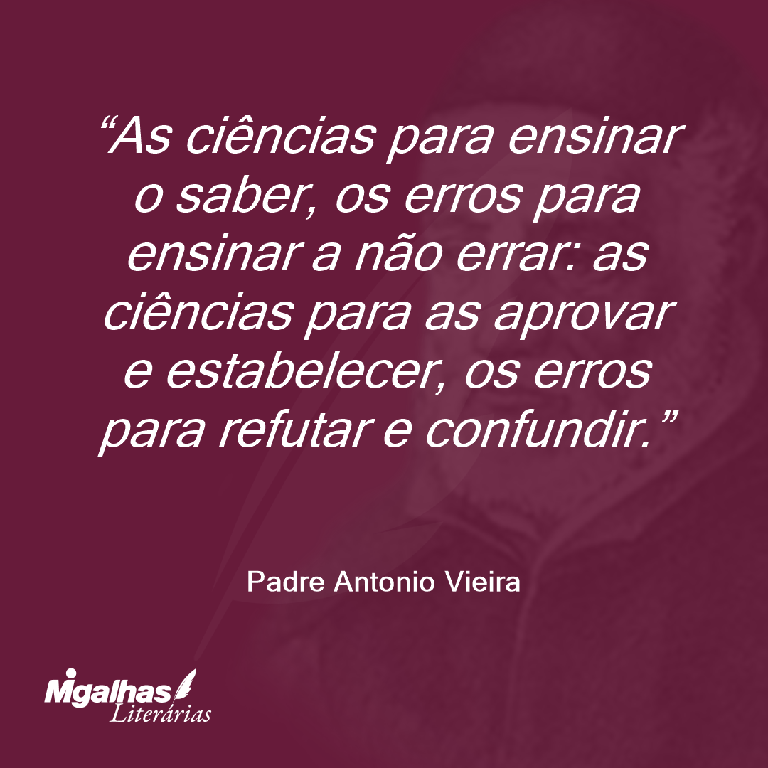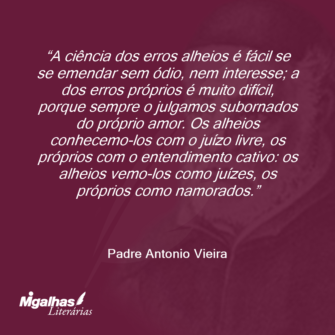 A ciência dos erros alheios é fácil se se emendar sem ódio, nem interesse; a dos erros próprios é muito difícil, porque sempre o julgamos subornados do próprio amor. Os alheios conhecemo-los com o juízo livre, os próprios com o entendimento cativo: os alheios vemo-los como juízes, os próprios como namorados.