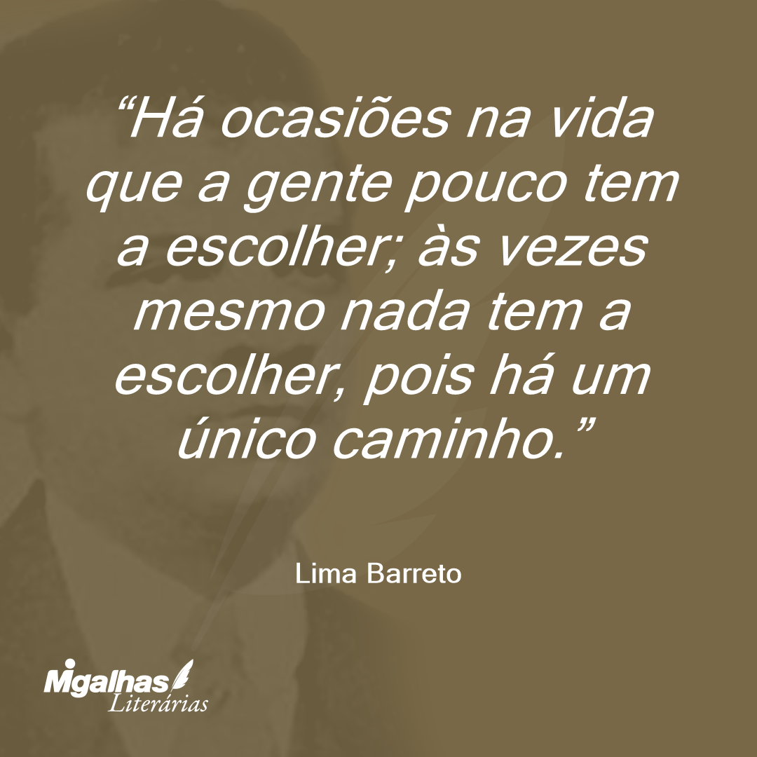 Há ocasiões na vida que a gente pouco tem a escolher; às vezes mesmo nada tem a escolher, pois há um único caminho.