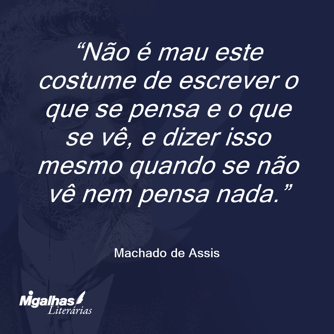 Não é mau este costume de escrever o que se pensa e o que se vê, e dizer isso mesmo quando se não vê nem pensa nada.