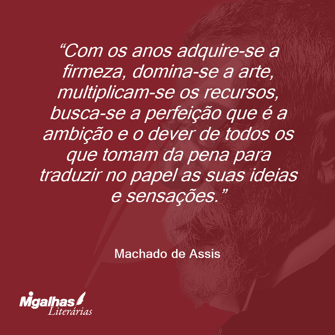 Com os anos adquire-se a firmeza, domina-se a arte, multiplicam-se os recursos, busca-se a perfeição que é a ambição e o dever de todos os que tomam da pena para traduzir no papel as suas ideias e sensações.