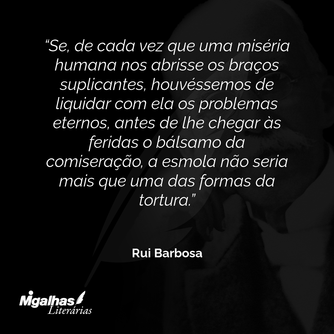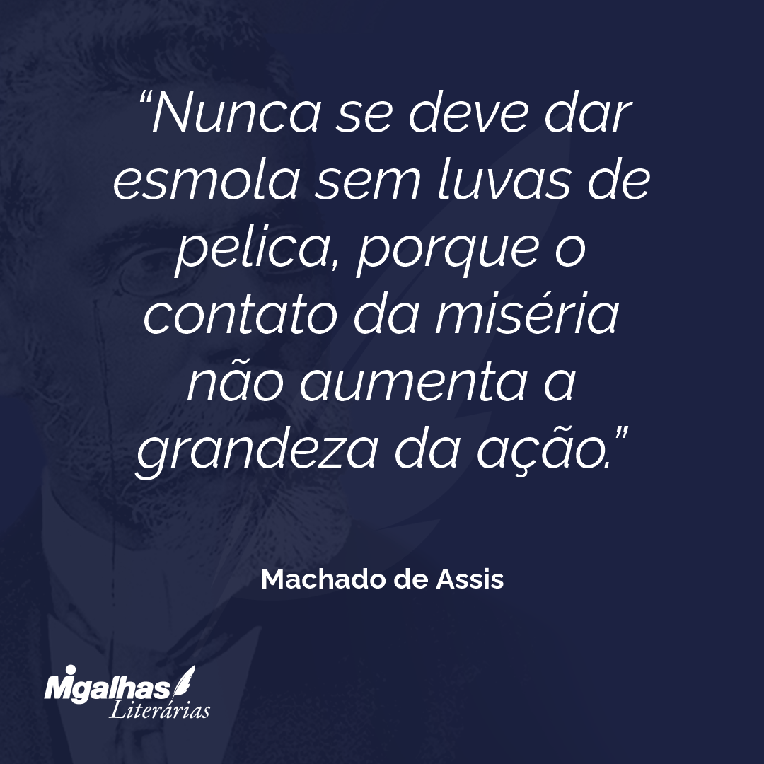 A esmola é o esforço, a privação, o sacrifício. Bela e bem fadada palavra, mas que não condiz senão àqueles entre quem a abnegação é um acidente, ao sexo endurecido no labor agro do mundo, em que a caridade é uma refletida conquista do espírito sobre o interesse.