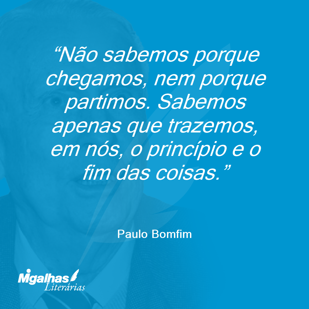 Não sabemos porque chegamos, nem porque partimos. Sabemos apenas que trazemos, em nós, o princípio e o fim das coisas.