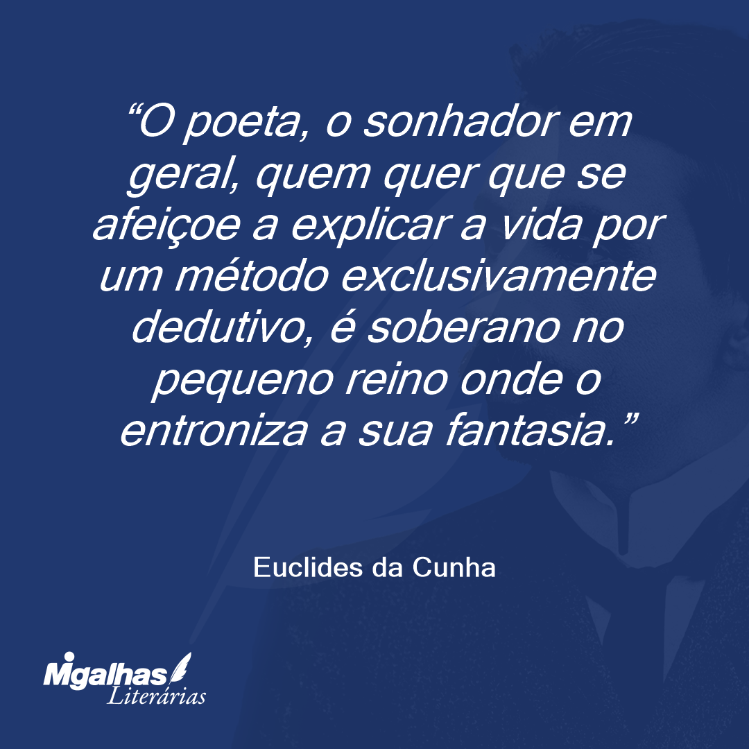O poeta, o sonhador em geral, quem quer que se afeiçoe a explicar a vida por um método exclusivamente dedutivo, é soberano no pequeno reino onde o entroniza a sua fantasia.