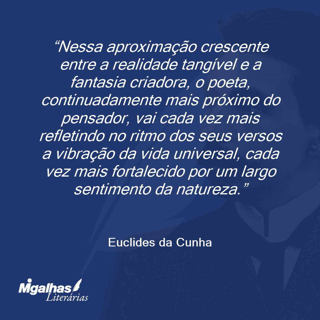 Nessa aproximação crescente entre a realidade tangível e a fantasia criadora, o poeta, continuadamente mais próximo do pensador, vai cada vez mais refletindo no ritmo dos seus versos a vibração da vida universal, cada vez mais fortalecido por um largo sentimento da natureza.