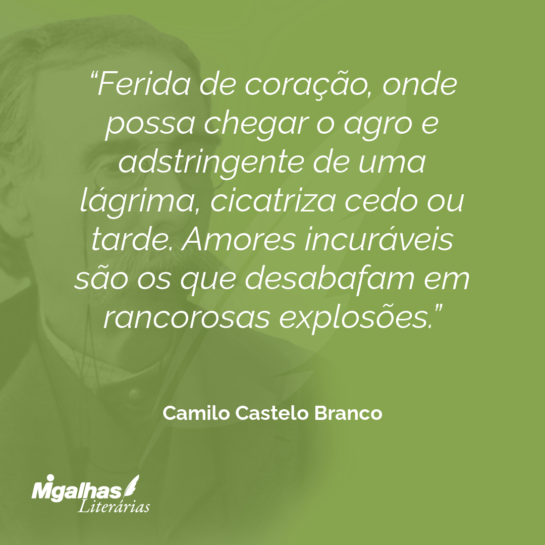 Ferida de coração, onde possa chegar o agro e adstringente de uma lágrima, cicatriza cedo ou tarde. Amores incuráveis são os que desabafam em rancorosas explosões.
