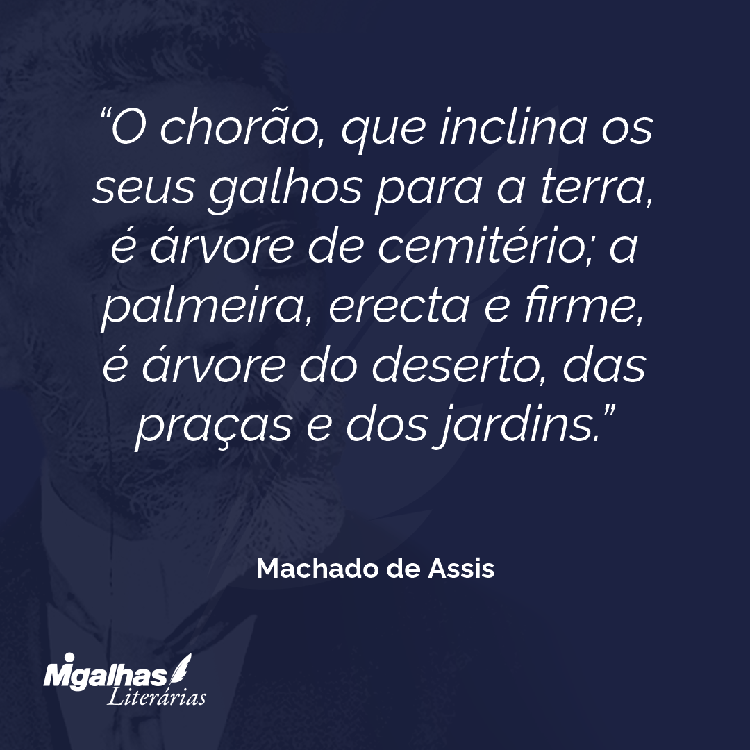 O chorão, que inclina os seus galhos para a terra, é árvore de cemitério; a palmeira, erecta e firme, é árvore do deserto, das praças e dos jardins.
