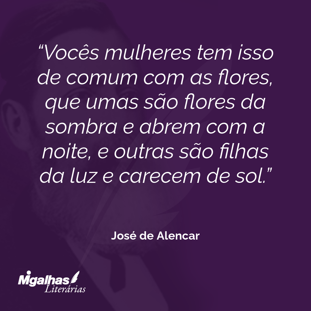 Vocês mulheres tem isso de comum com as flores, que umas são flores da sombra e abrem com a noite, e outras são filhas da luz e carecem de sol.