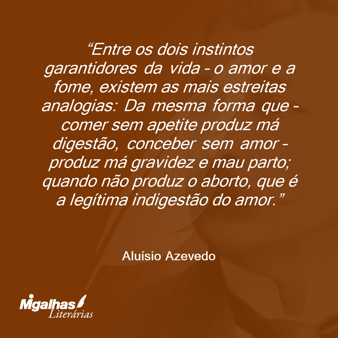 Entre os dois instintos garantidores da vida – o amor e a fome, existem as mais estreitas analogias: Da mesma forma que – comer sem apetite produz má digestão, conceber sem amor – produz má gravidez e mau parto; quando não produz o aborto, que é a legítima indigestão do amor.