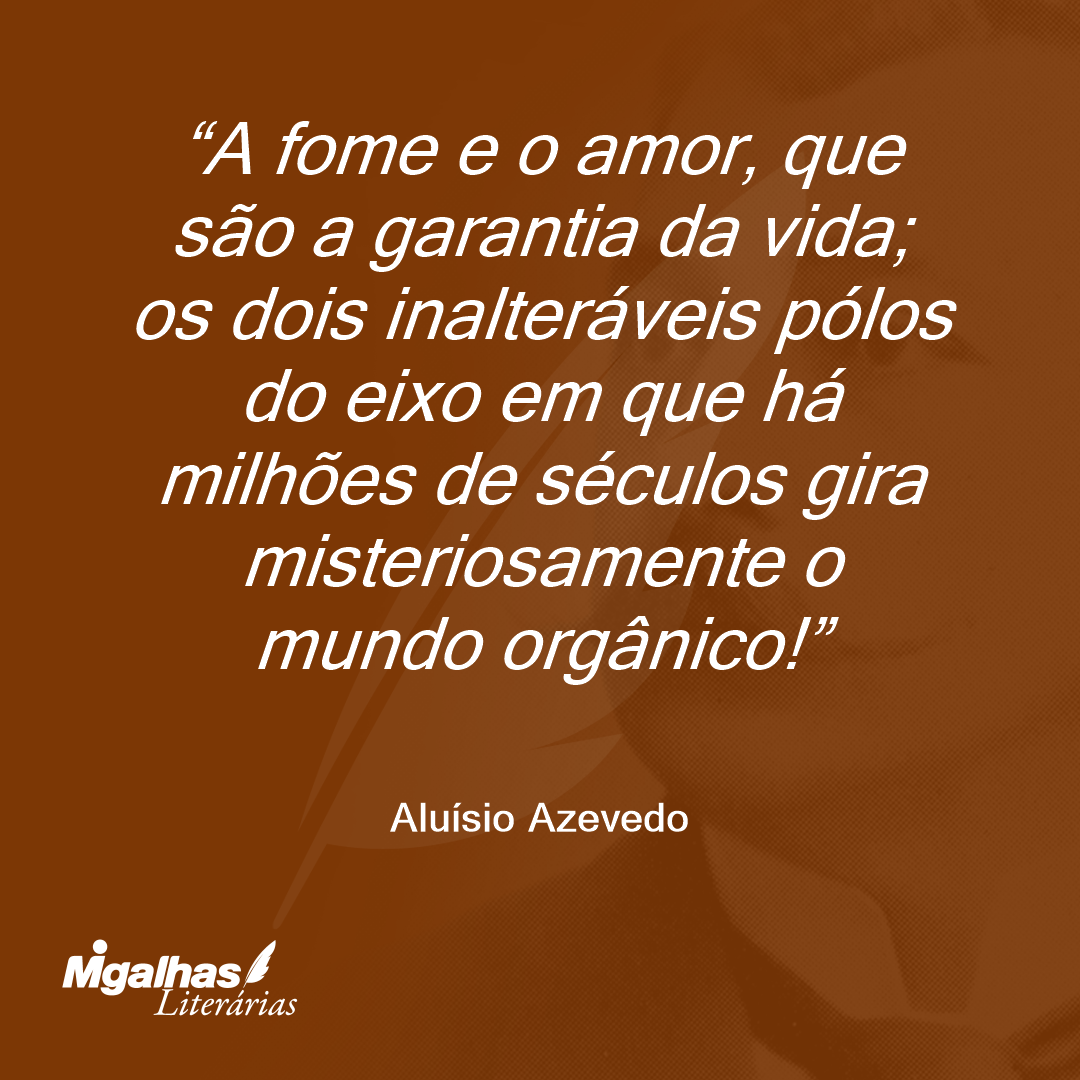 A fome e o amor, que são a garantia da vida; os dois inalteráveis pólos do eixo em que há milhões de séculos gira misteriosamente o mundo orgânico!