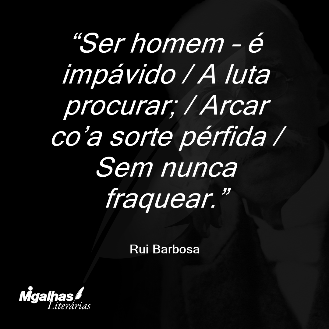 Ser homem – é impávido / A luta procurar; / Arcar co’a sorte pérfida / Sem nunca fraquear.