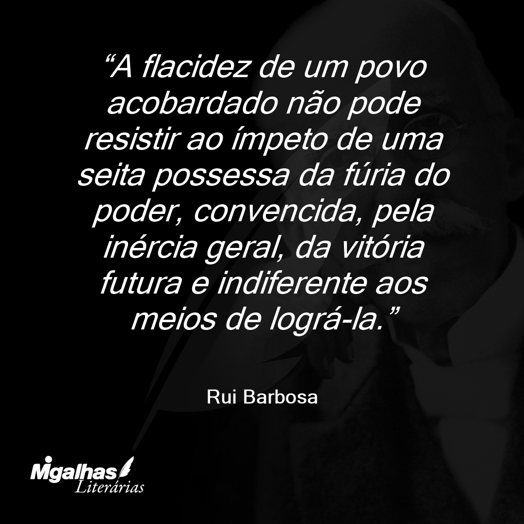A flacidez de um povo acobardado não pode resistir ao ímpeto de uma seita possessa da fúria do poder, convencida, pela inércia geral, da vitória futura e indiferente aos meios de lográ-la.