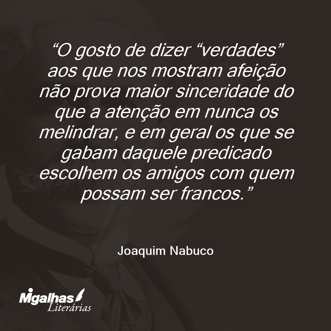 O gosto de dizer “verdades” aos que nos mostram afeição não prova maior sinceridade do que a atenção em nunca os melindrar, e em geral os que se gabam daquele predicado escolhem os amigos com quem possam ser francos.