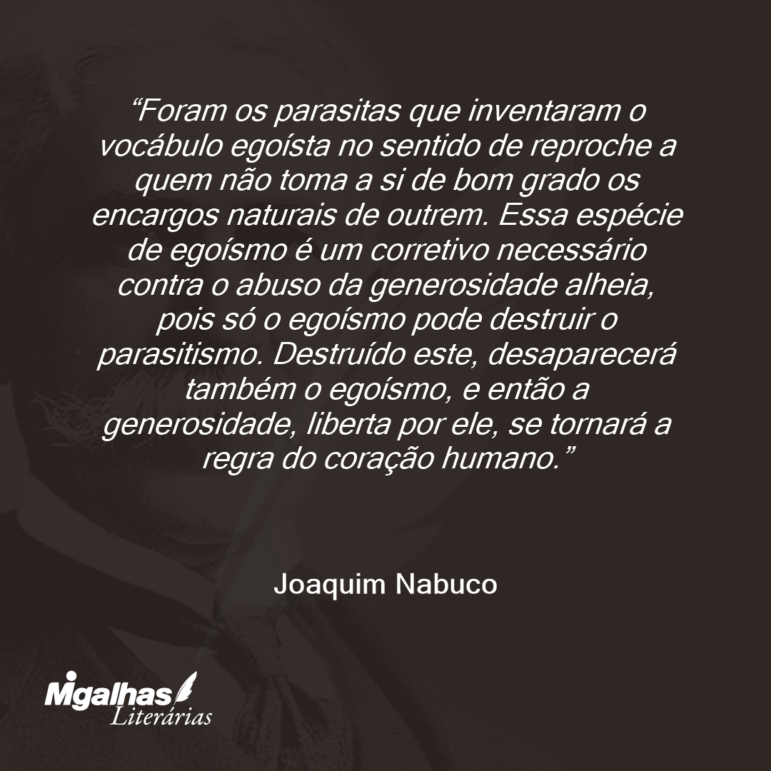 Foram os parasitas que inventaram o vocábulo egoísta no sentido de reproche a quem não toma a si de bom grado os encargos naturais de outrem. Essa espécie de egoísmo é um corretivo necessário contra o abuso da generosidade alheia, pois só o egoísmo pode destruir o parasitismo. Destruído este, desaparecerá também o egoísmo, e então a generosidade, liberta por ele, se tornará a regra do coração humano.