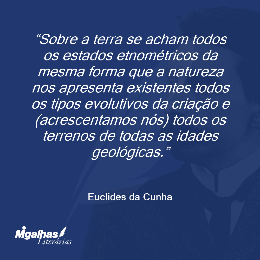Sobre a terra se acham todos os estados etnométricos da mesma forma que a natureza nos apresenta existentes todos os tipos evolutivos da criação e (acrescentamos nós) todos os terrenos de todas as idades geológicas.