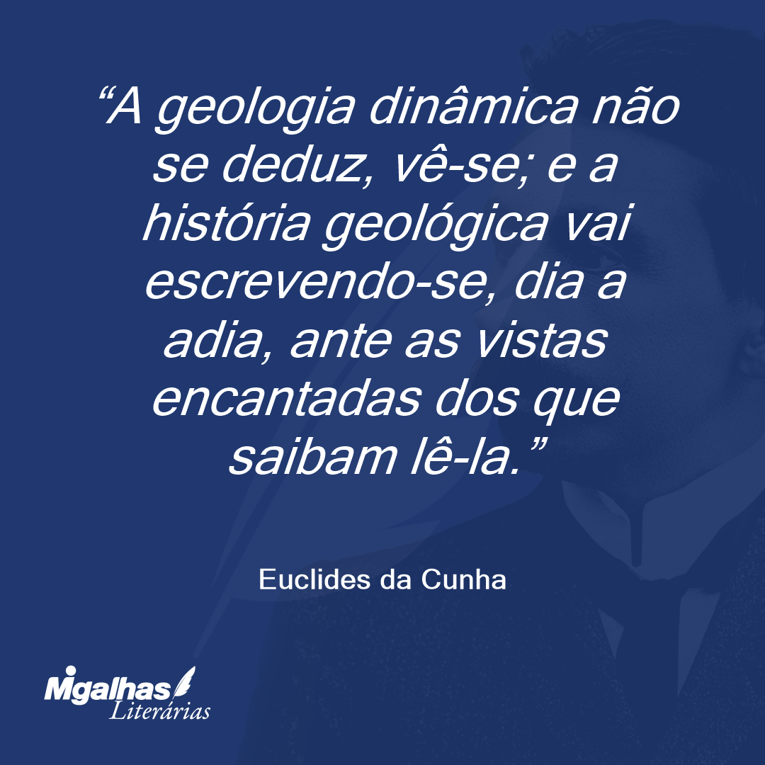 A geologia dinâmica não se deduz, vê-se; e a história geológica vai escrevendo-se, dia a adia, ante as vistas encantadas dos que saibam lê-la.