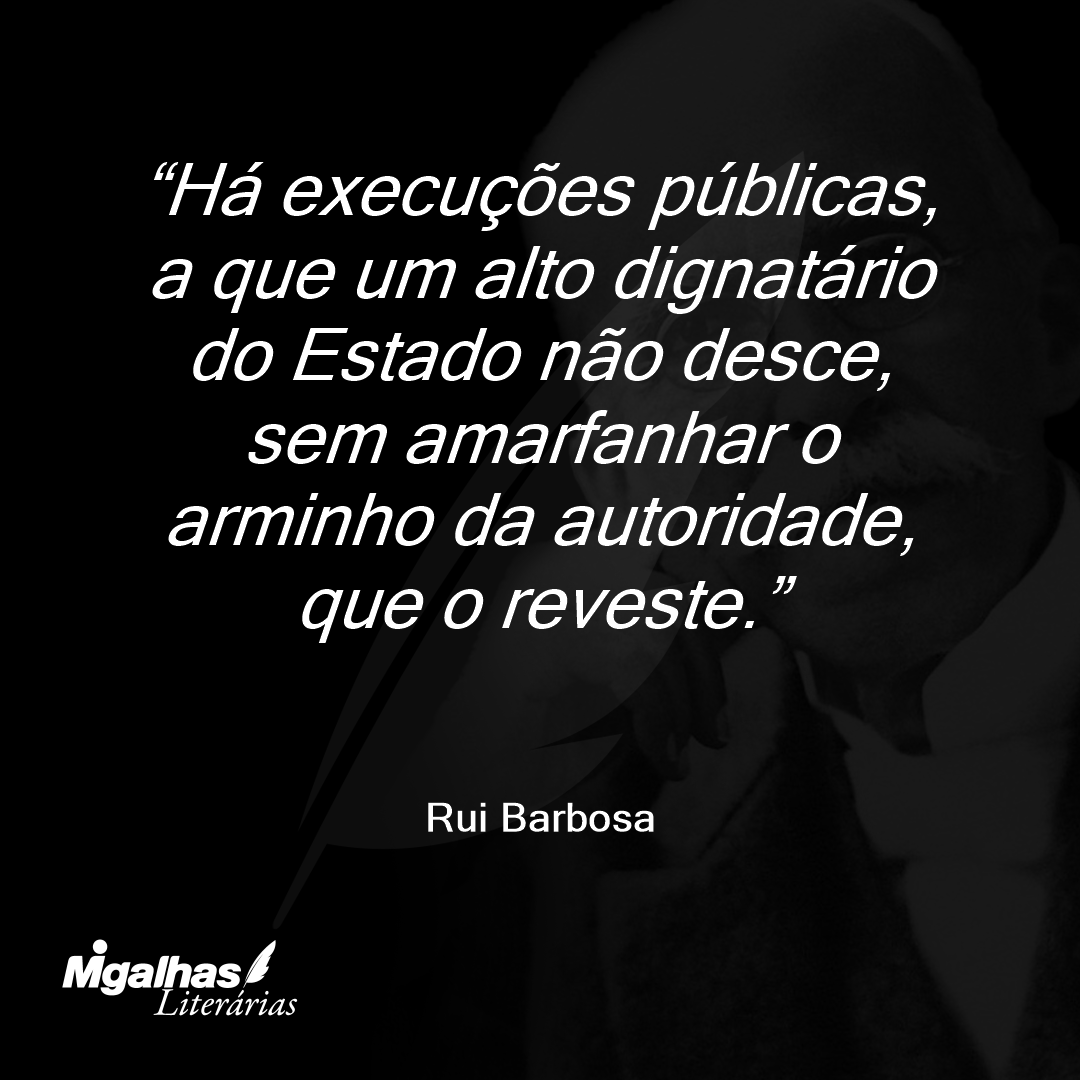 Há execuções públicas, a que um alto dignatário do Estado não desce, sem amarfanhar o arminho da autoridade, que o reveste.