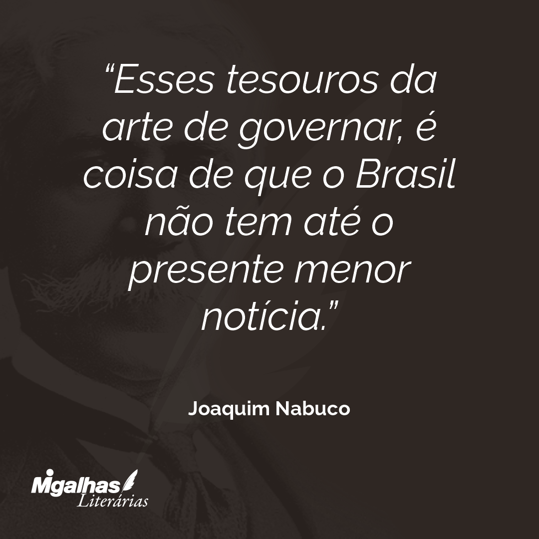 Esses tesouros da arte de governar, é coisa de que o Brasil não tem até o presente menor notícia.