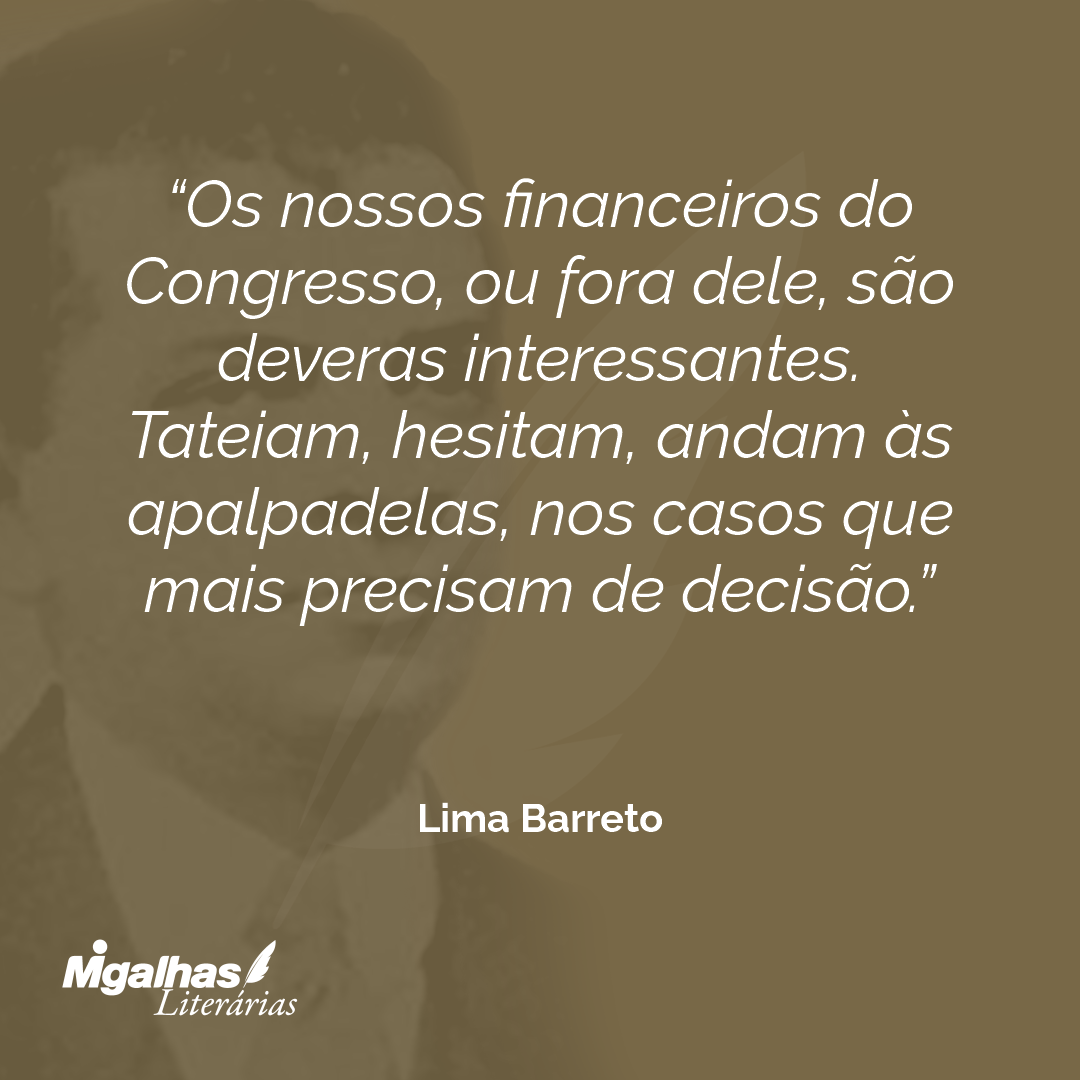 Os nossos financeiros do Congresso, ou fora dele, são deveras interessantes. Tateiam, hesitam, andam às apalpadelas, nos casos que mais precisam de decisão.