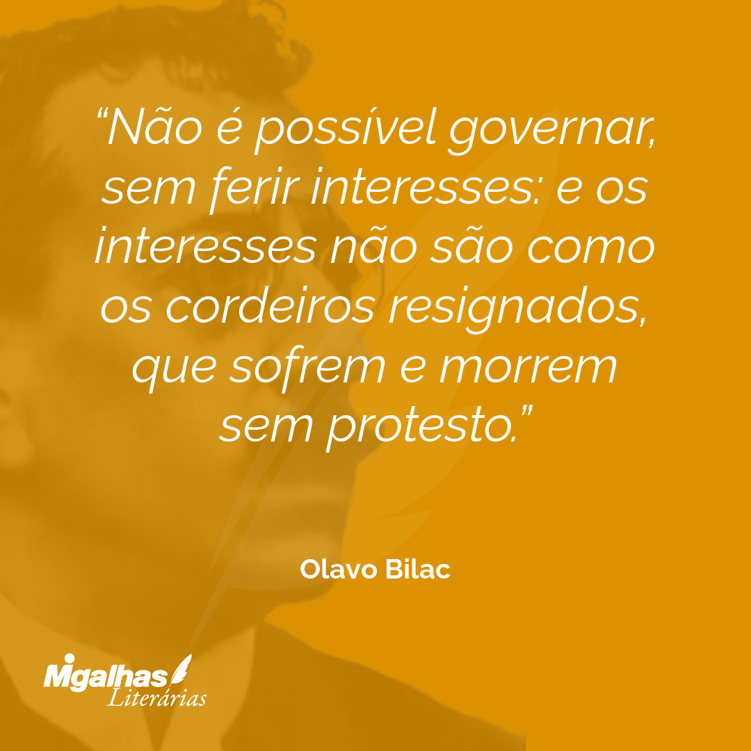 Não é possível governar, sem ferir interesses: e os interesses não são como os cordeiros resignados, que sofrem e morrem sem protesto.