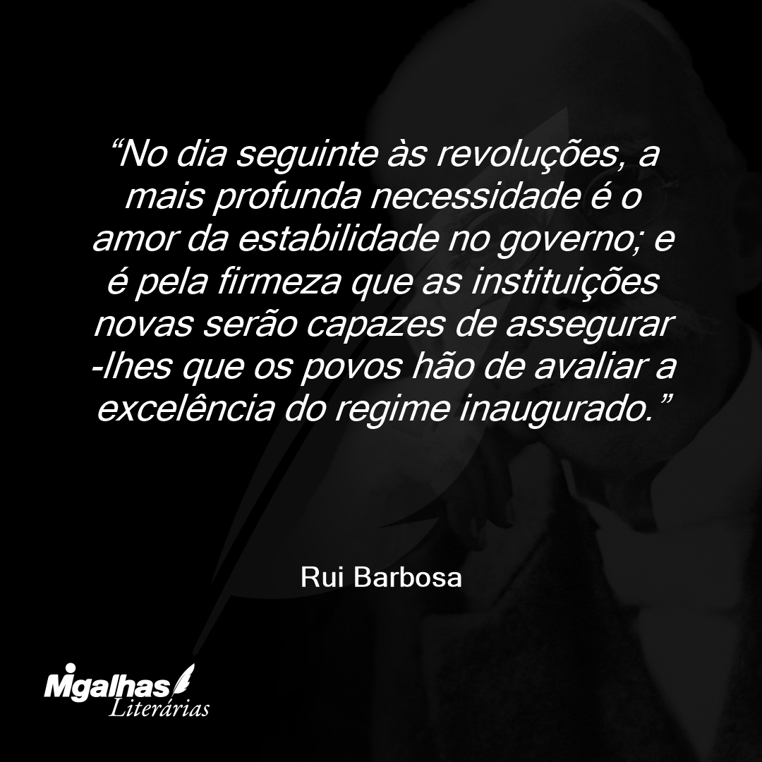 No dia seguinte às revoluções, a mais profunda necessidade é o amor da estabilidade no governo; e é pela firmeza que as instituições novas serão capazes de assegurar-lhes que os povos hão de avaliar a excelência do regime inaugurado.