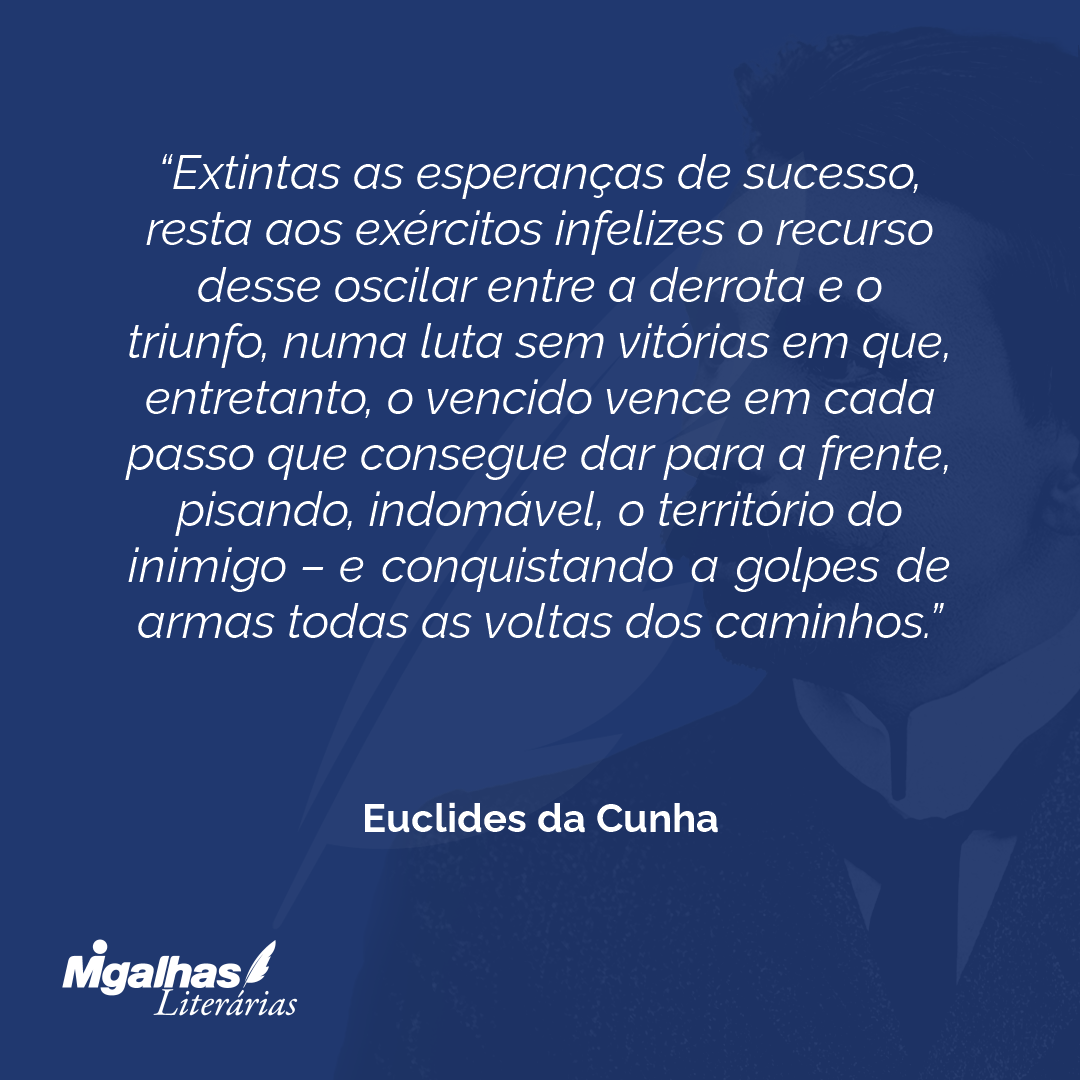 Extintas as esperanças de sucesso, resta aos exércitos infelizes o recurso desse oscilar entre a derrota e o triunfo, numa luta sem vitórias em que, entretanto, o vencido vence em cada passo que consegue dar para a frente, pisando, indomável, o território do inimigo – e conquistando a golpes de armas todas as voltas dos caminhos.