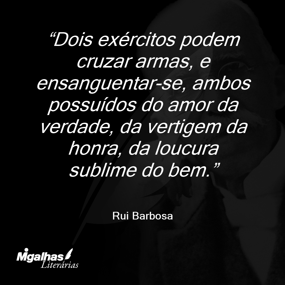 Dois exércitos podem cruzar armas, e ensanguentar-se, ambos possuídos do amor da verdade, da vertigem da honra, da loucura sublime do bem.
