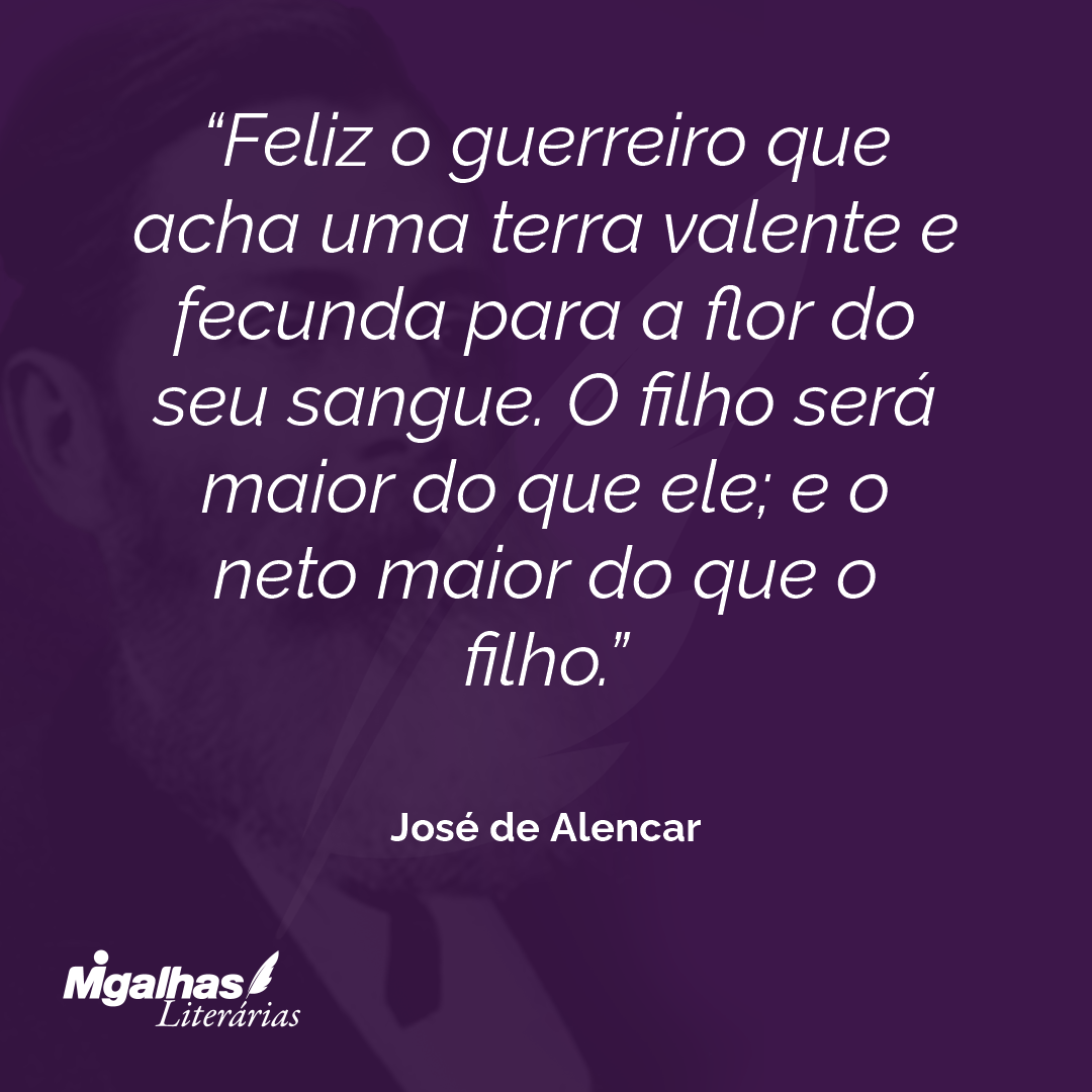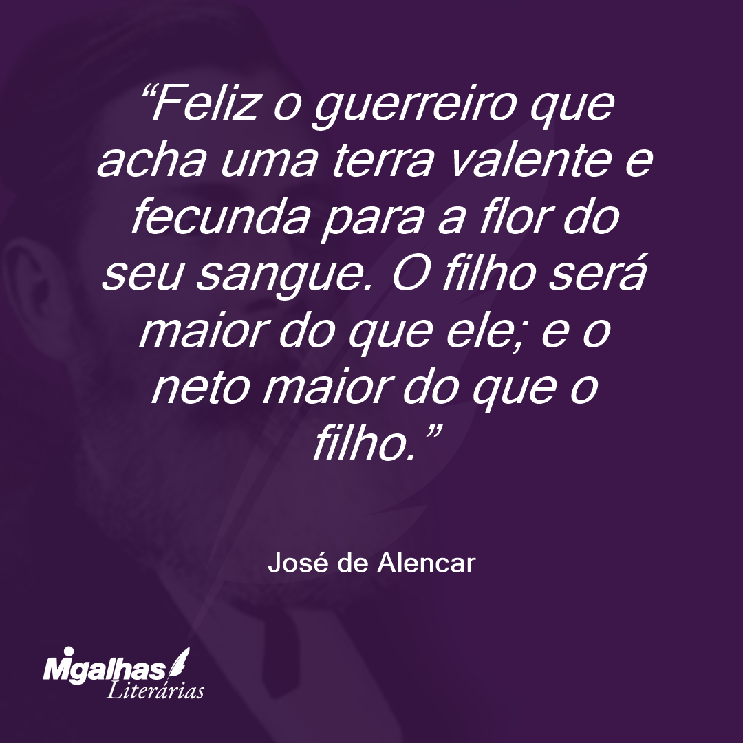 Feliz o guerreiro que acha uma terra valente e fecunda para a flor do seu sangue. O filho será maior do que ele; e o neto maior do que o filho.