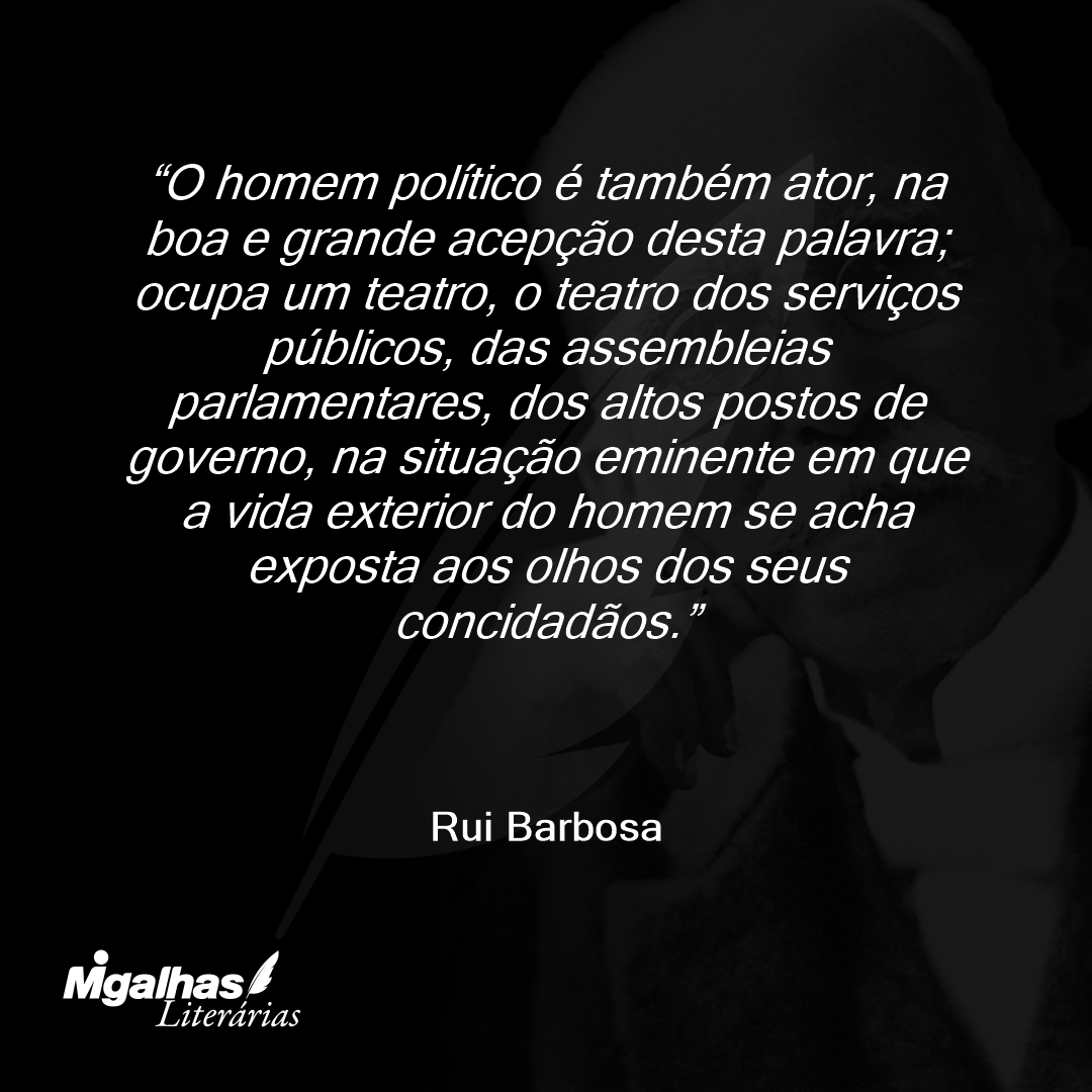 O homem político é também ator, na boa e grande acepção desta palavra; ocupa um teatro, o teatro dos serviços públicos, das assembleias parlamentares, dos altos postos de governo, na situação eminente em que a vida exterior do homem se acha exposta aos olhos dos seus concidadãos.