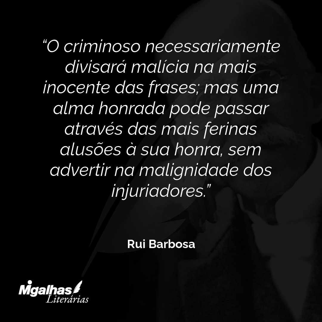 O devasso, o libertino, o algoz, apresenta-se altivo e arrogante, tendo a seu favor a lei, e a autoridade, o direito e a força, lança a garra sobre a presa, que é objeto de sua cobiça ou de seu ódio, e pode fruí-la ou esmagá-la a seu talante, enquanto o homem de nobre coração, de impulsos generosos, inerme perante a lei, aí fica suplantado, tolhido, manietado sem poder estender o braço em socorro da inocente e nobre vítima, que deseja proteger. Assim, por uma estranha aberração, vemos a lei armando o vício e decepando os braços à virtude.