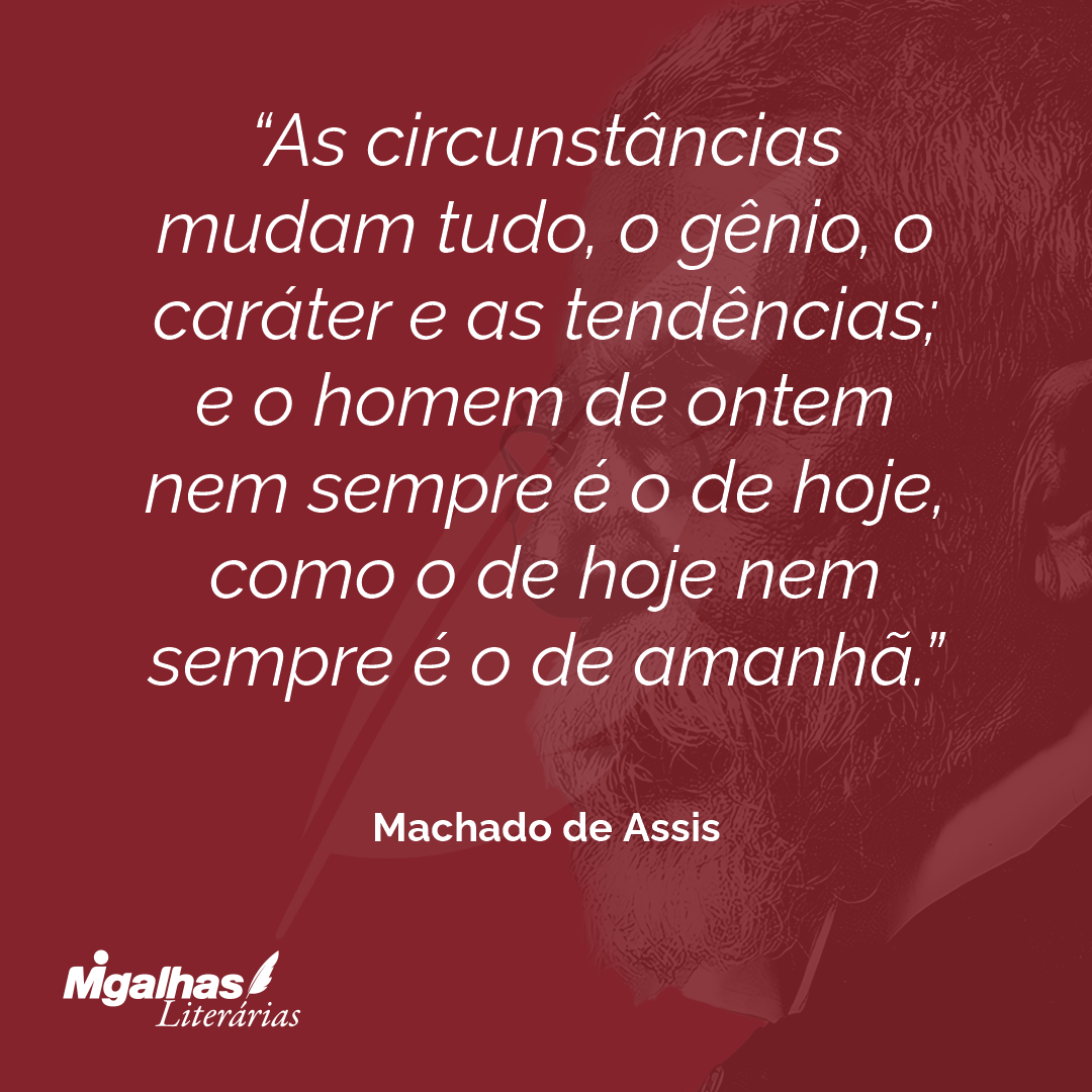 As circunstâncias mudam tudo, o gênio, o caráter e as tendências; e o homem de ontem nem sempre é o de hoje, como o de hoje nem sempre é o de amanhã.