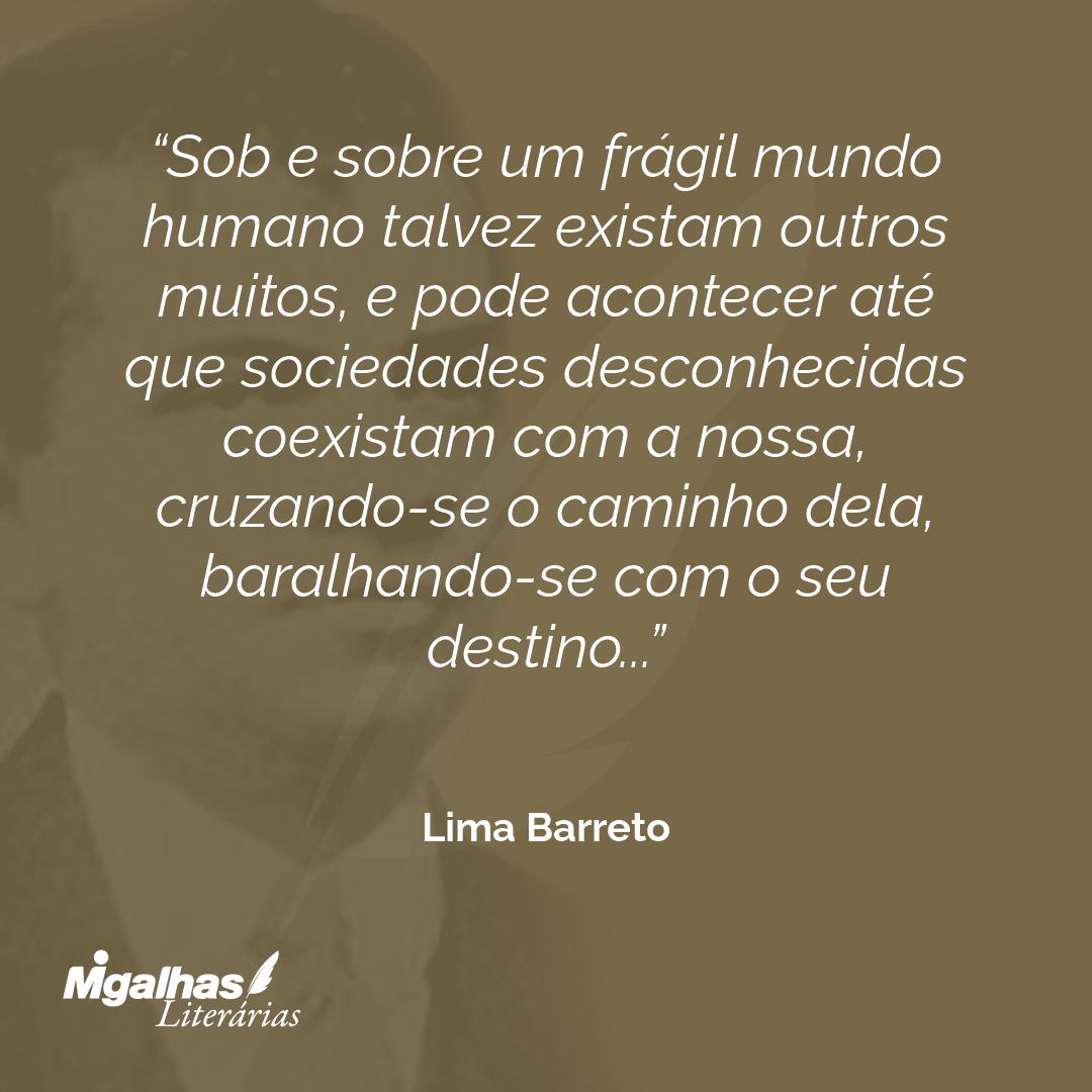 Sob e sobre um frágil mundo humano talvez existam outros muitos, e pode acontecer até que sociedades desconhecidas coexistam com a nossa, cruzando-se o caminho dela, baralhando-se com o seu destino...
