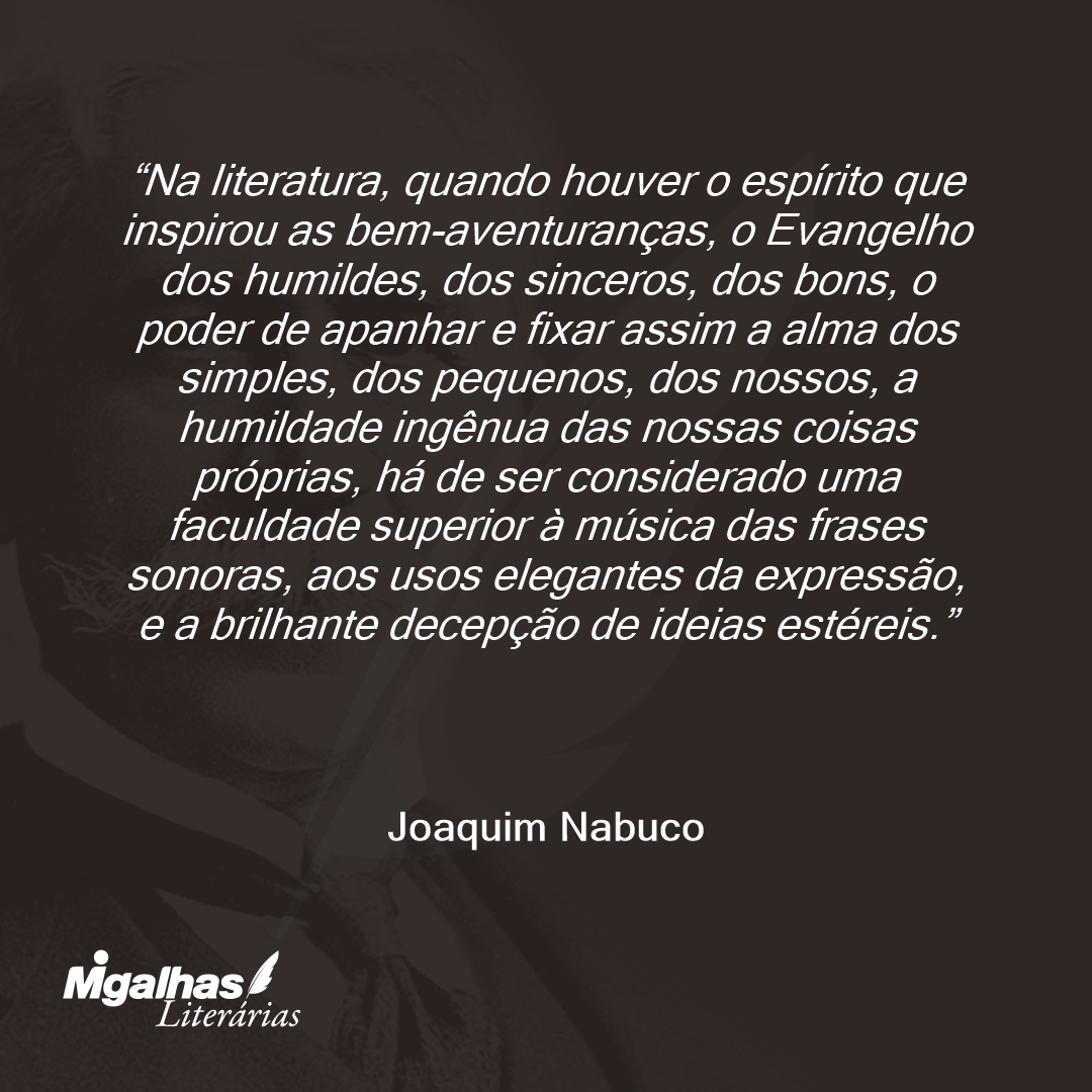 Na literatura, quando houver o espírito que inspirou as bem-aventuranças, o Evangelho dos humildes, dos sinceros, dos bons, o poder de apanhar e fixar assim a alma dos simples, dos pequenos, dos nossos, a humildade ingênua das nossas coisas próprias, há de ser considerado uma faculdade superior à música das frases sonoras, aos usos elegantes da expressão, e a brilhante decepção de ideias estéreis.