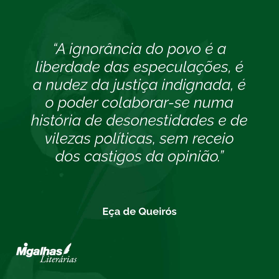 A ignorância do povo é a liberdade das especulações, é a nudez da justiça indignada, é o poder colaborar-se numa história de desonestidades e de vilezas políticas, sem receio dos castigos da opinião.