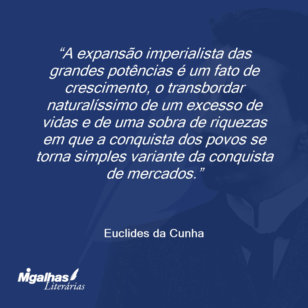 A expansão imperialista das grandes potências é um fato de crescimento, o transbordar naturalíssimo de um excesso de vidas e de uma sobra de riquezas em que a conquista dos povos se torna simples variante da conquista de mercados.