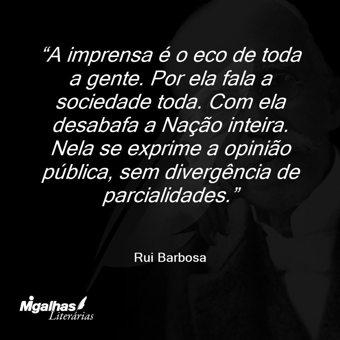 A imprensa é o eco de toda a gente. Por ela fala a sociedade toda. Com ela desabafa a Nação inteira. Nela se exprime a opinião pública, sem divergência de parcialidades.