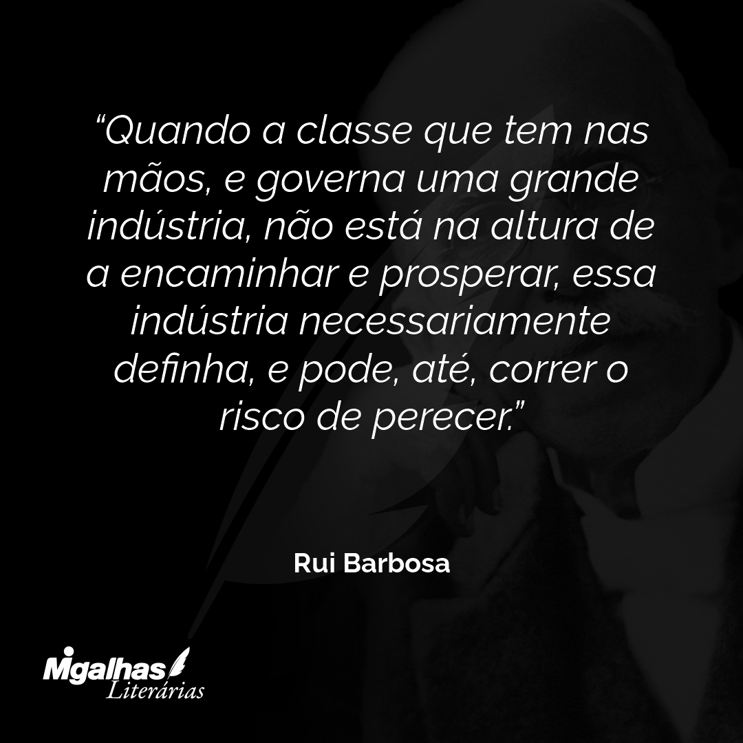 Quando a classe que tem nas mãos, e governa uma grande indústria, não está na altura de a encaminhar e prosperar, essa indústria necessariamente definha, e pode, até, correr o risco de perecer.