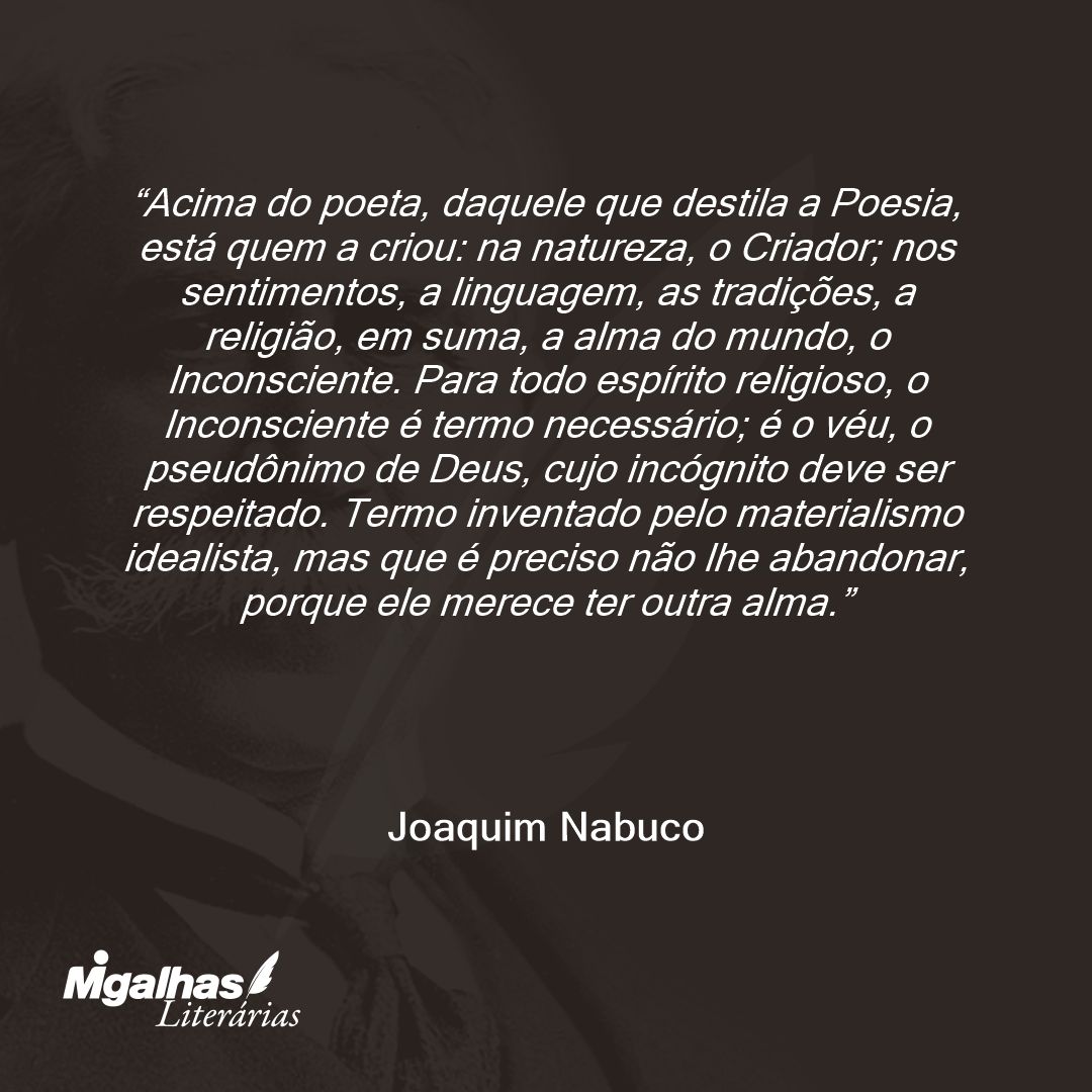 Acima do poeta, daquele que destila a Poesia, está quem a criou: na natureza, o Criador; nos sentimentos, a linguagem, as tradições, a religião, em suma, a alma do mundo, o Inconsciente. Para todo espírito religioso, o Inconsciente é termo necessário; é o véu, o pseudônimo de Deus, cujo incógnito deve ser respeitado. Termo inventado pelo materialismo idealista, mas que é preciso não lhe abandonar, porque ele merece ter outra alma.